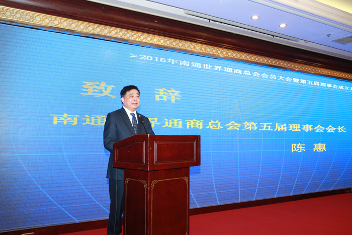 2016年2月18日,對于安惠家人來講,是個令人欣喜的好日子。在江蘇省人民政府外事僑務辦公室主任王華、南通市人民政府外事僑務辦公室主任王浦堅和近百位優秀通商代表的見證下,陳惠董事長當選南通世界通商總會第五屆理事會會長。